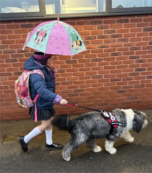 Daisy, Ramsgrove Russian Ruby At Potterdale is now a registered therapy dog. She visits the school most days and accompanies our niece Willow, who is Autistic and partiell deaf, around the school visiting the pupils. Just before Christmas Daisy presented us with a lovely baby girl, we call her little Pudding. The dad is Russell, Ch Potterdale Platinum Plus.